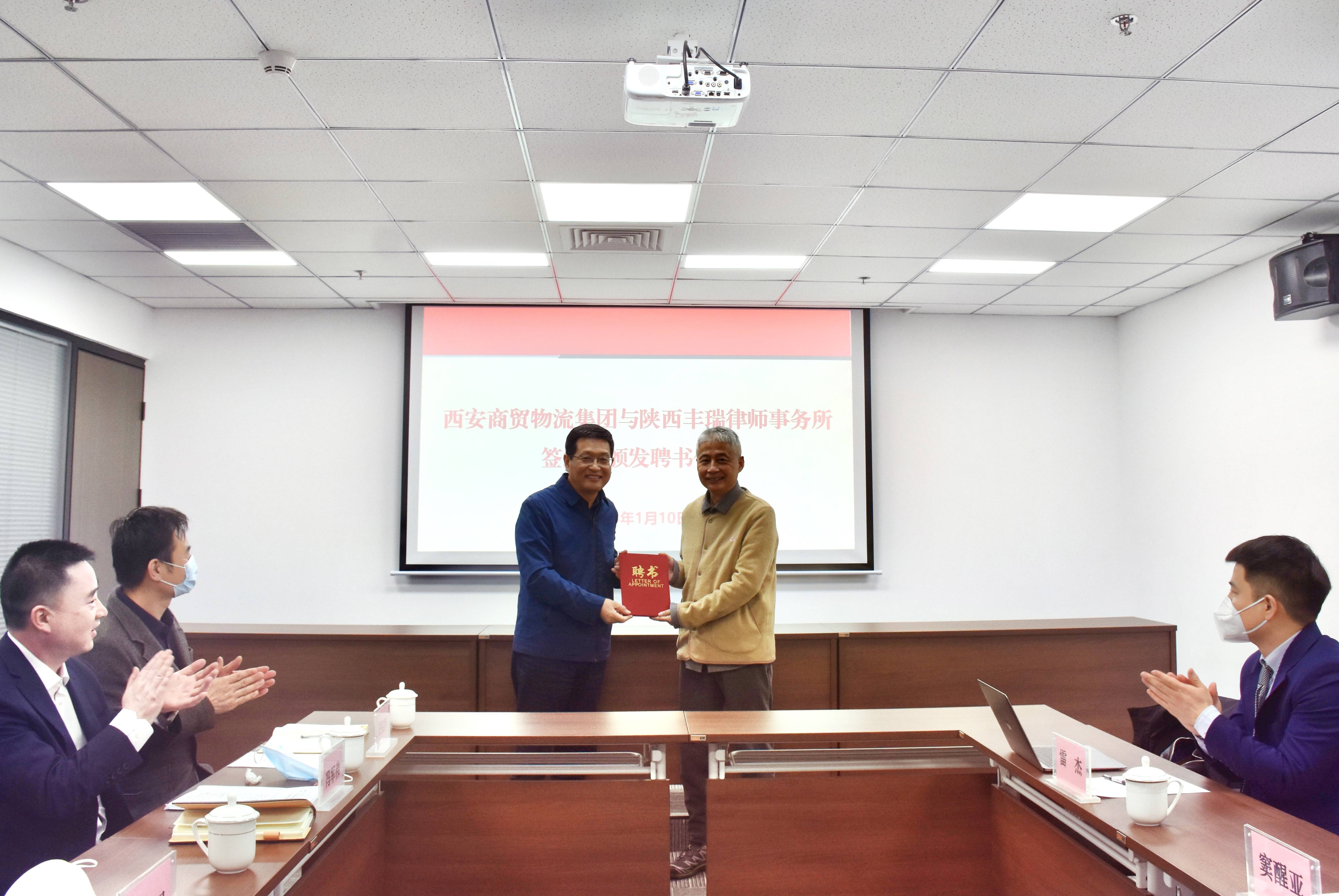1月10日,西安商貿(mào)物流集團有限公司與陜西豐瑞律師事務(wù)所,在集團總部舉行了合作座談會暨首席法律顧問聘任儀式。集團黨委書記、董事長曹兆民,黨委委員、副總經(jīng)理馮軍偉,及相關(guān)部門負(fù)責(zé)同志,陜西豐瑞律師事務(wù)所主任竇醒亞和相關(guān)律師出席。